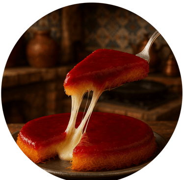 Kunefa is typically served at crowded tables, during holidays, at gatherings with guests, or on special occasions.